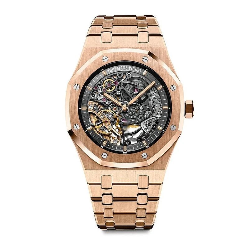 Découvrez la Royal Oak Squelette, une montre exceptionnelle signée Audemars Piguet, qui allie le luxe au savoir-faire horloger suisse. Cette pièce iconique est bien plus qu’une montre : elle est le symbole d’un style audacieux et raffiné, conçu pour ceux qui apprécient les détails les plus fins