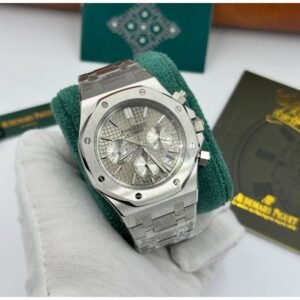 À l’intérieur de cet écrin d’acier, le mouvement automatique squeletté Audemars Piguet anime la montre avec une précision remarquable. Ce calibre est non seulement un exploit technique mais également un objet de beauté, visible à travers le cadran squeletté et le fond transparent.