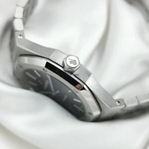 Le cœur de cette pièce horlogère est un calibre automatique squeletté signé Audemars Piguet. Ce mouvement sophistiqué est non seulement une prouesse mécanique, permettant un remontage automatique efficace, mais également une œuvre d’art visuelle qui attire le regard vers ses composants méticuleusement agencés. Le mouvement harmonieux des aiguilles témoigne de l’expertise et de l’innovation de la maison horlogère.