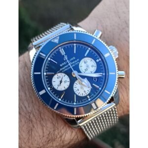 Calibre Manufacture Breitling 01, chronographe automatique à roue à colonnes, 47 rubis, 28 800 a/h, réserve de marche 70 h.