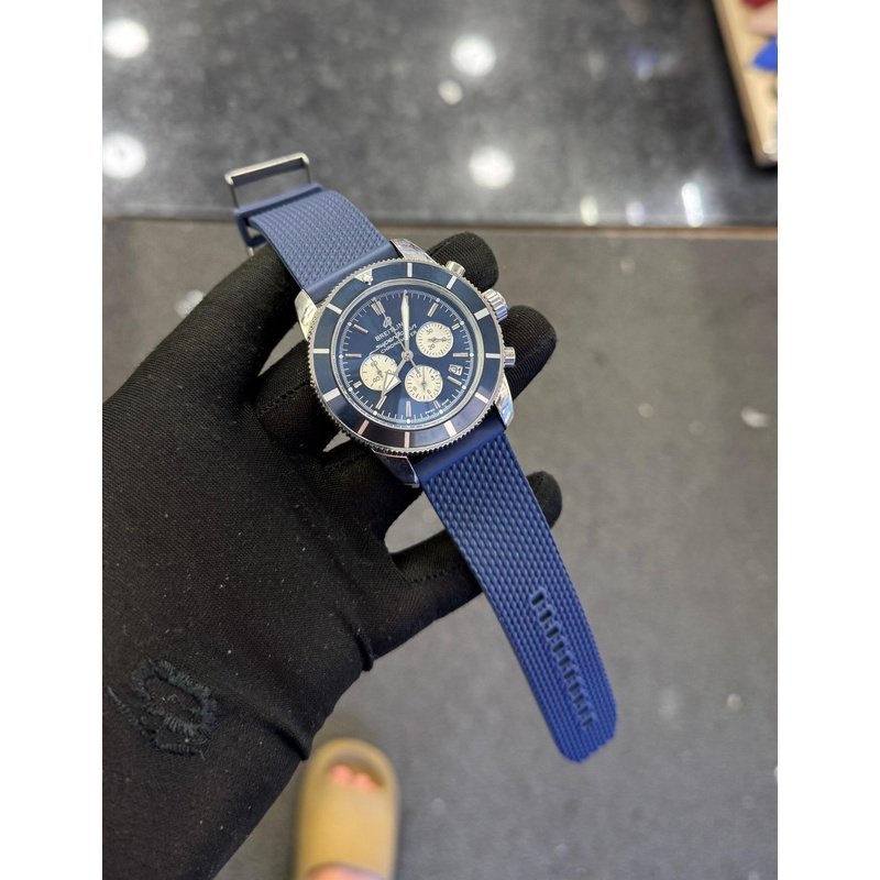 Une montre de plongée d’exception signée Breitling, alliant la noblesse de la manufacture suisse à un style marin moderne. Son cadran bleu océan et son bracelet en caoutchouc texturé en font une pièce à la fois sportive et élégante.