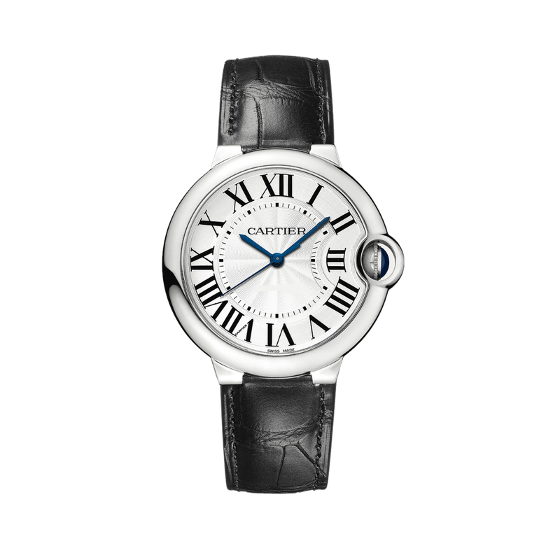 Le cadran présente une teinte argentée élégante, complimentée par des chiffres romains noirs qui assurent une lisibilité optimale. Ce design classique est agrémenté d’aiguilles de style glaive, soigneusement bleuies pour ajouter une touche de sophistication subtile au cadran.