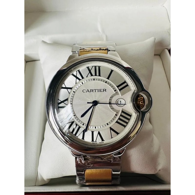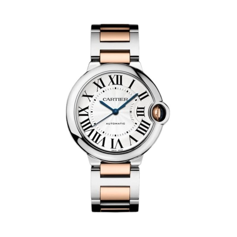Boîtier rond de 42 mm en acier inoxydable, aux lignes douces et élégantes. Lunette polie et couronne intégrée protégée, signature de la collection Ballon Bleu.