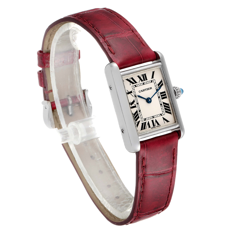 Le bracelet en cuir bordeaux présente une finition texturée qui apporte à la montre confort et caractère. Son aspect élégant et sa structure en cuir assurent un port agréable et ajusté au poignet. Le choix de cette teinte riche et classique du bracelet en fait un élément parfait pour compléter à la fois des tenues formelles et décontractées.
