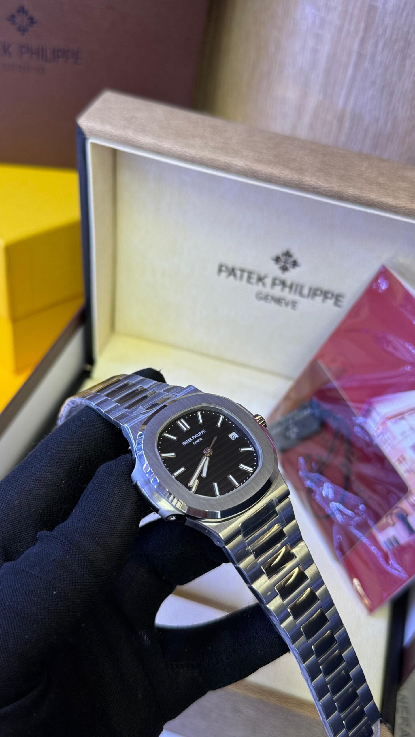 Ce garde-temps se distingue par un cadran noir lune au dégradé subtil, orné d’un relief horizontal frappé. Les index appliqués et les aiguilles de type bâton, tous en or gris, sont rehaussés d’un revêtement luminescent blanc, assurant une excellente lisibilité même dans l’obscurité.