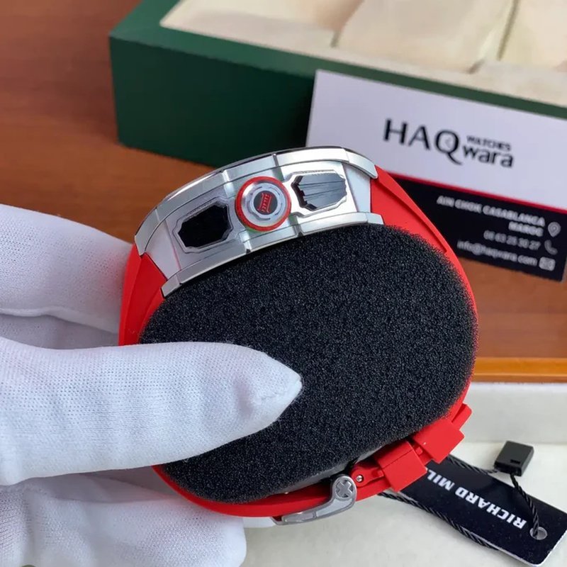 Équipée du calibre RMAC4 automatique, cette montre propose une fonction chronographe avec rattrapante, affichage de la date et réserve de marche de 60 heures. Une véritable pièce d’ingénierie moderne.