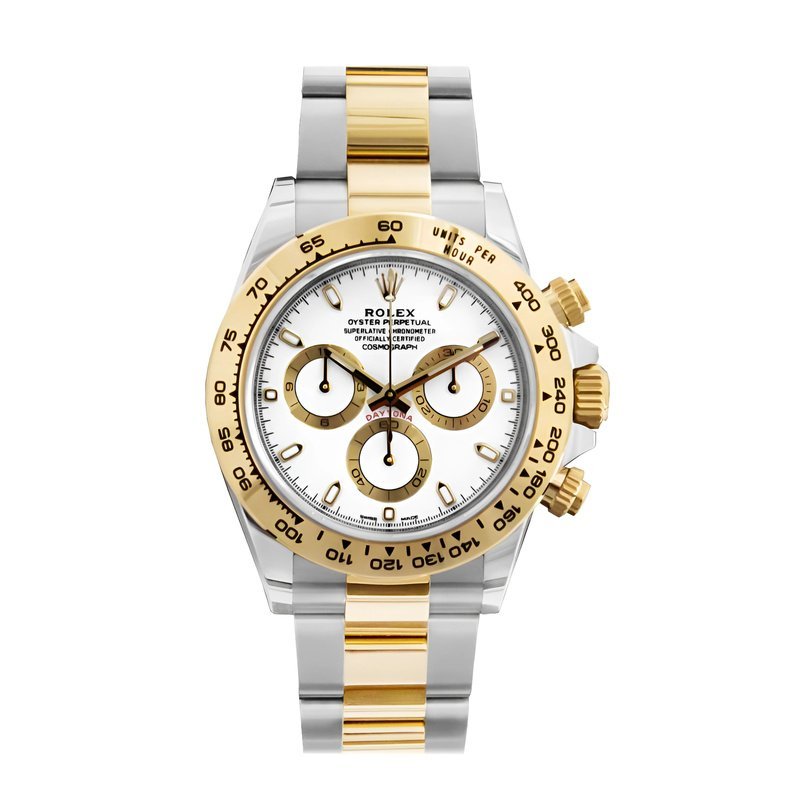 Le cadran de cette montre est d’un blanc lumineux, offrant une visibilité optimale et une élégance intemporelle. Il est enrichi par des compteurs contrastés qui ajoutent de la profondeur et du dynamisme à l’ensemble. Les index dorés apportent une touche d’éclat, tandis qu’un guichet date discrètement intégré renforce la fonctionnalité du cadran.
