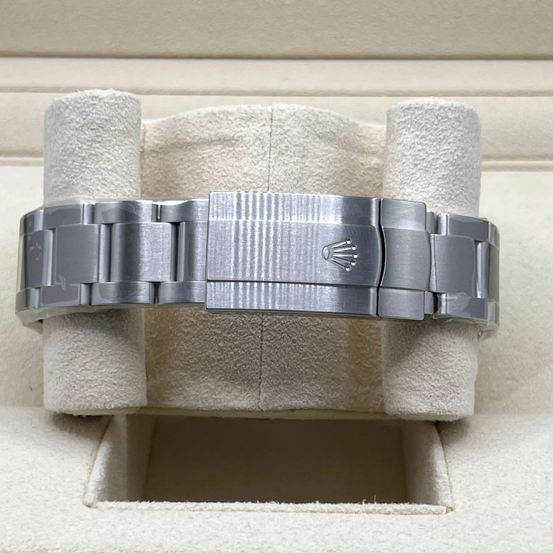 Magnifique cadran bleu ciel type Tiffany, rehaussé d’index bâtons chromés et d’aiguilles luminescentes pour une lisibilité parfaite. Le style épuré et équilibré du cadran capture l’esprit intemporel de Rolex.