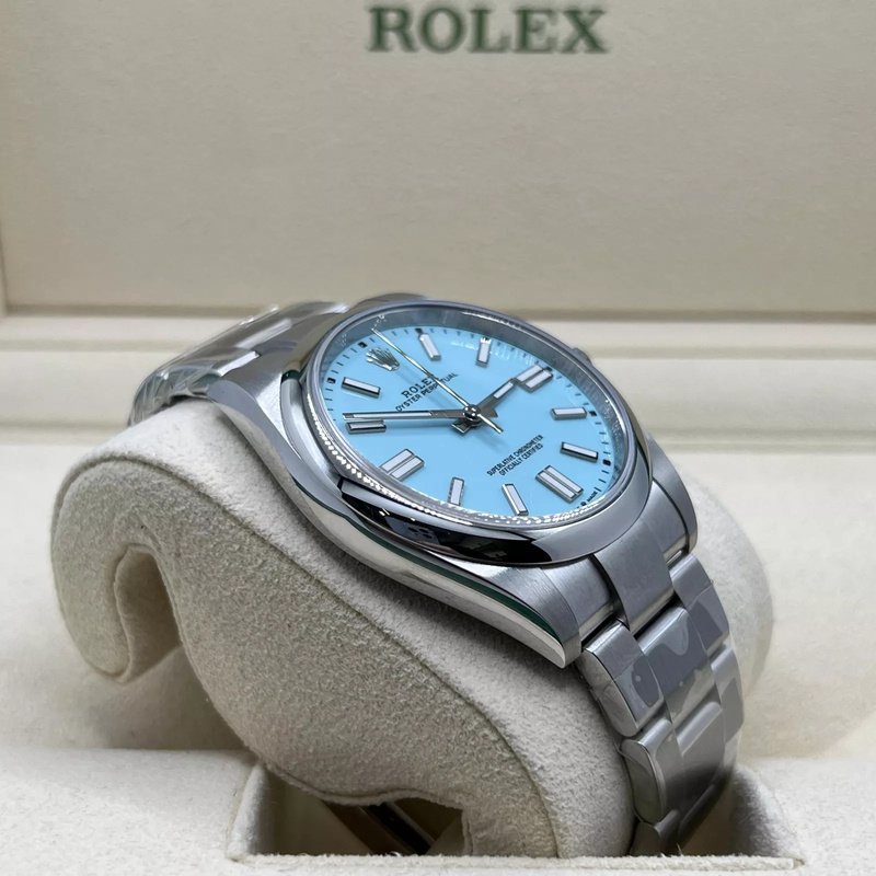 Découvrez l’icône absolue du raffinement : la Rolex Oyster Perpetual 41mm dans son édition exclusive cadran bleu Tiffany. Une pièce rare, convoitée par les passionnés et les collectionneurs, qui combine à la perfection minimalisme, prestige et éclat moderne.