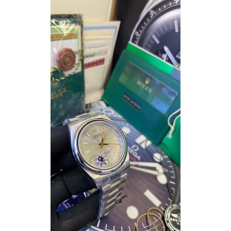 Le boîtier en acier Oystersteel de 36 mm présente une finition brossée avec des flancs polis, assurant une présence raffinée au poignet. Le verre saphir inrayable et l’étanchéité jusqu’à 100 mètres garantissent robustesse et durabilité.
