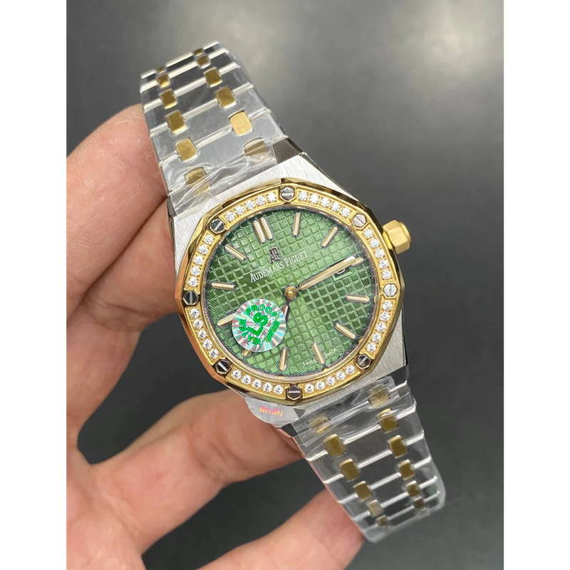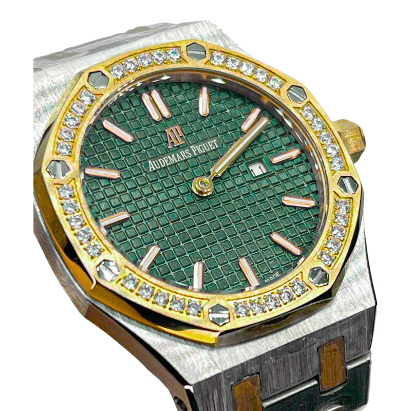 Lunette octogonale sertie de diamants, boîtier acier inoxydable 33. Design iconique Royal Oak.