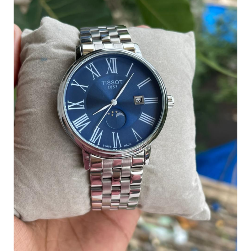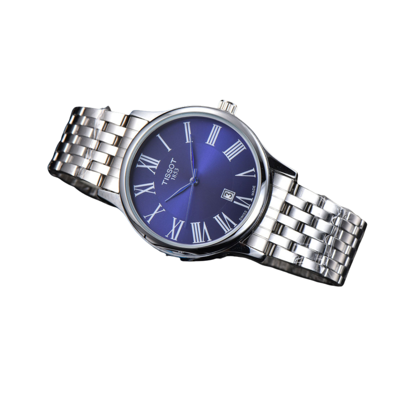 Le cadran présente une finition soleil bleu dégradé, élevant le niveau esthétique de la montre. Les index romains blancs apportent une lisibilité impeccable et ajoutent une touche classique à l’ensemble. Un guichet date subtil est placé à 6 heures, assurant une lecture facile sans perturber l’harmonie du design.