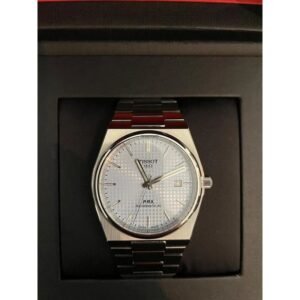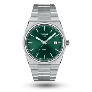 Boîtier rond de 41 mm en acier inoxydable poli, protégé par un verre saphir résistant aux rayures. Étanchéité jusqu’à 100 mètres, idéale pour un usage quotidien.