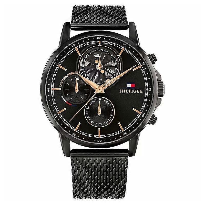 Mouvement à quartz de haute précision alimenté par pile. Fonction chronographe multifonction intégrée : heure, date, jour et plus encore.