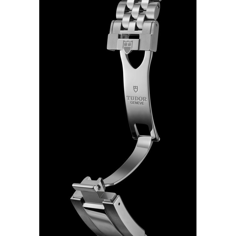 Bracelet acier à cinq mailles avec fermoir TUDOR « T-fit » ajustable, combinant confort et robustesse.