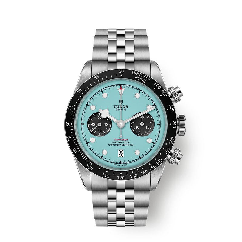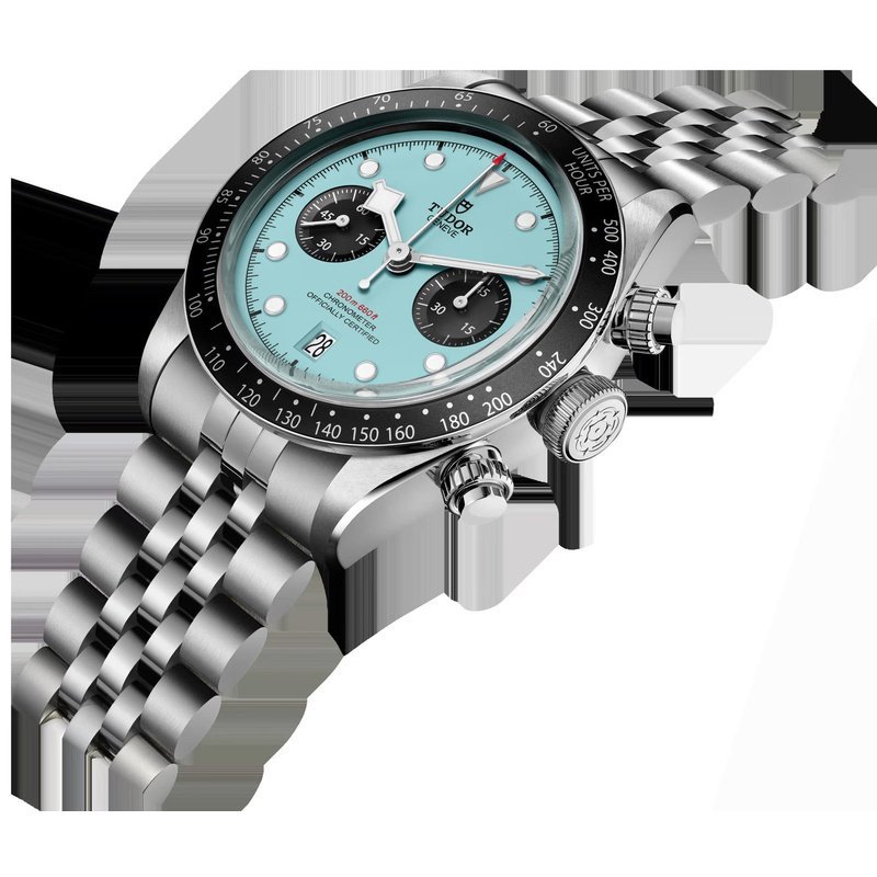 Une version éclatante du célèbre chronographe Black Bay, avec un cadran turquoise audacieux qui marie esprit sportif et élégance contemporaine.