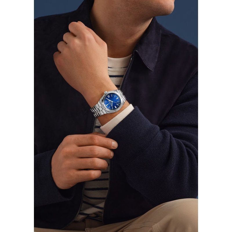 Montre automatique alliant robustesse et élégance, sublimée par un cadran bleu intense et un bracelet acier raffiné.